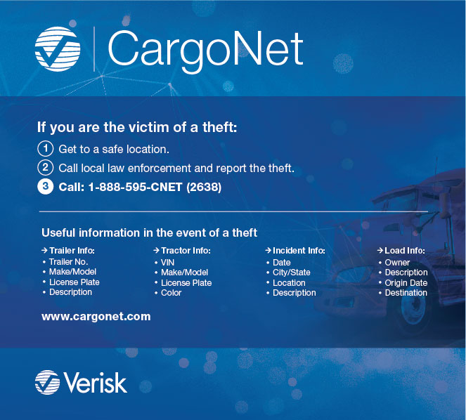 During this unprecedented global health emergency, we are all looking for ways that we can help. It is our belief that in tough times it is more important than ever to band together and support our supply chain community in any way possible. Many criminals will see this as an opportunity to take advantage of the fact that securing cargo may not be the immediate priority. To this end, CargoNet will be providing complimentary cargo theft response services. That means supply chain professionals can report a cargo theft event and will gain access to CargoNet’s 24/7/365 command center and subject matter experts which includes our cargo recovery network and award-winning investigative support.
